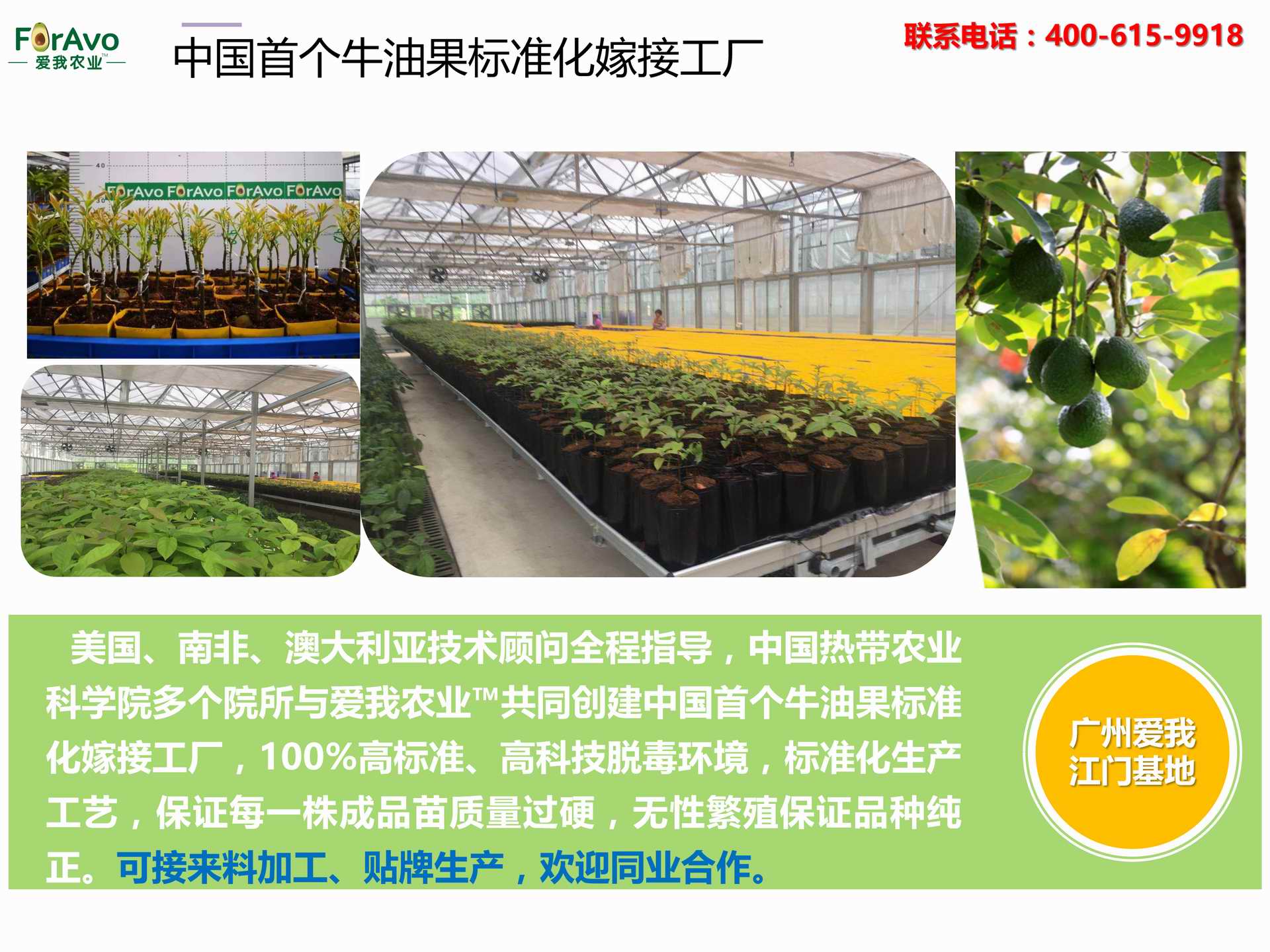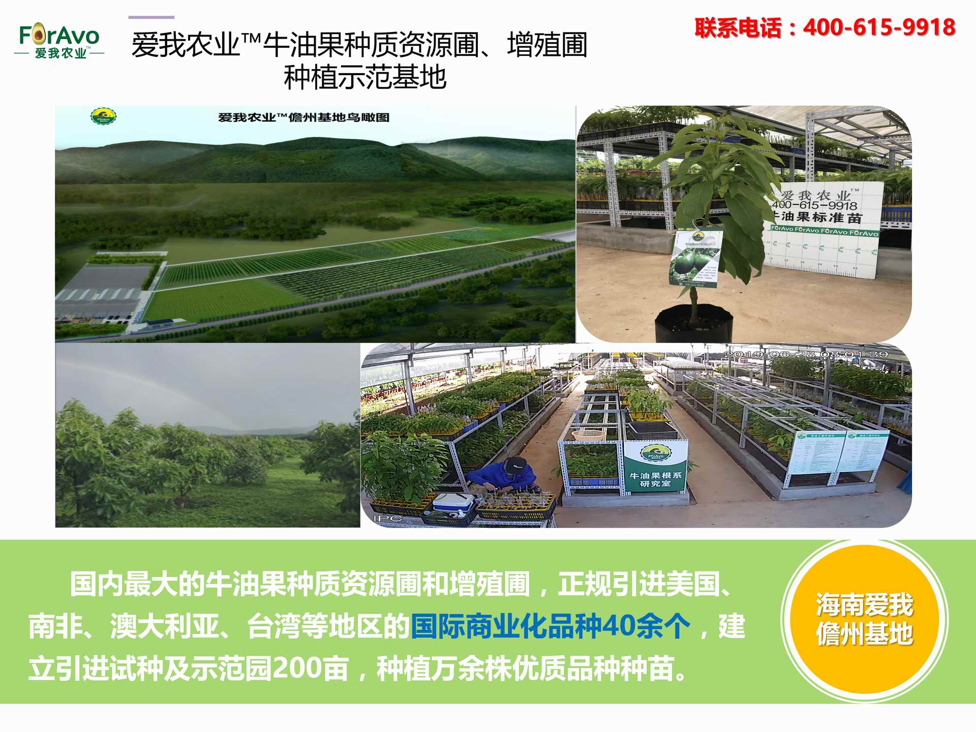 海南愛我農(nóng)業(yè)科技有限公司是一家綜合性的高科技農(nóng)業(yè)發(fā)展企業(yè),旗下愛我農(nóng)業(yè)TM致力于打造中國最大最強(qiáng)的牛油果種植企業(yè)。依托美國、南非、澳大利亞等擁有百年牛油果繁育、種植歷史以及產(chǎn)業(yè)鏈?zhǔn)袌龅膬?yōu)勢,開展牛油果種苗繁育、種植技術(shù),種植加盟、深加工等產(chǎn)業(yè)。結(jié)合中國市場,面向廣大苗圃基地、種植農(nóng)場、合作加工等企業(yè),推出的適合規(guī)?;?、標(biāo)準(zhǔn)化的牛油果全產(chǎn)業(yè)鏈服務(wù)。 Hainan Foravo Agricultural Technology Co., Ltd. is a comprehensive high-tech agricultural development enterprise , dedicated to building the largest and most powerful avocado plantation enterprise in China. Relying on the advantage of avocado nursery, planting history, and the industrial chain over 100 years in the United States, South Africa, Australia, we are carrying out nursery, planting, proce...